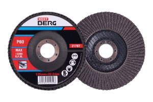 Flap disc, grit: 60 grain type: aluminum oxide binder: artificial resin base material: flexible fabric - 100% cotton (240-260g/m2) design: curved hole: 22.2mm, max. working speed: 80m/s, max .permissible speed: 13300 1/min, use: grinding, sanding, cutting off paint, ..., dimensions: stated in the product name.