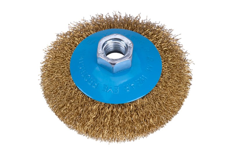 rotační kartáč s vlnitým pomosazeným drátem 0,3 mm, miskové provedení