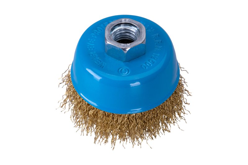 • rotační kartáč s vlnitým pomosazeným drátem 0,3 mm, hrnkové provedení