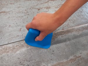 ruční sparovací gumová stěrka na aplikaci spárovacích hmot