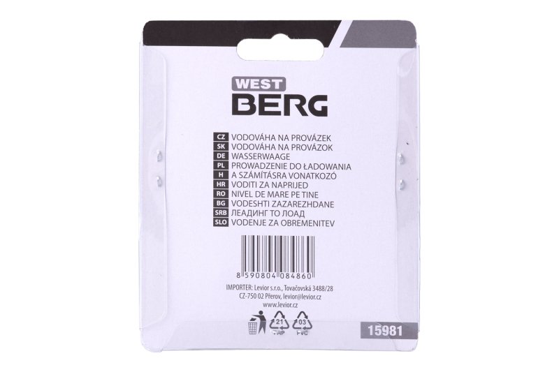 Kleine Wasserwaage aus Kunststoff mit zwei Haken zum Aufhängen an einer Schnur, extra leichte Ausführung, um ein Durchhängen zu verhindern. Gürtelclip, für die Tasche. V-Nut zur Messung der horizontalen Lage von Rundrohren.