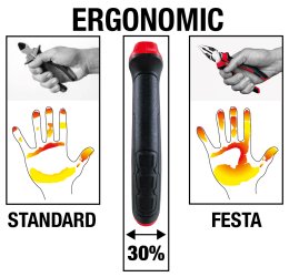 - ergonomic two-component soft handles , when grasping and pressing 30% more contact with the handle - reduces the amount of force required