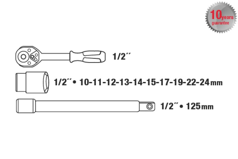 A high-quality gola set is suitable due to the quality of the materials used and the processing in a professional car workshop or service center. 10 year warranty. All parts are made of high-quality chrome-vanadium steel. Nickel finish. Bit tips are S2 alloy steel. The ratchets have a fine division of 72 teeth, the body of the ratchet is made of CrV steel, the tooth mechanism is made of S2 steel, and the handle is ergonomically shaped with harmless rubber. New design primary material plastic case with metal closures and lid hinges.