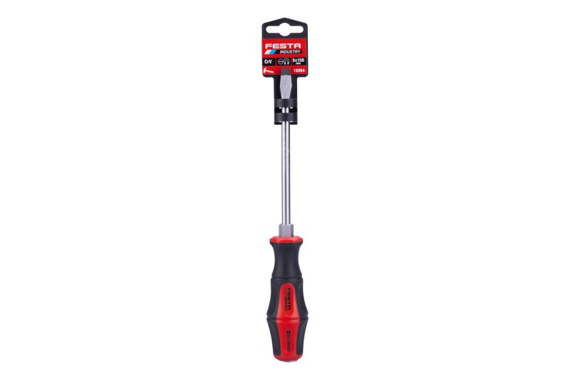 The metal shaft of the FESTA screwdriver is made of high-quality chrome vanadium steel, the hardened tip is magnetic, the screwdriver shaft is firmly connected to the impact end, the handle has a hexagon for the use of a key, the combination of polypropylene and rubber on the handle and its ergonomic shape guarantee good anti-slip properties and good durability against lubricants and chemicals.