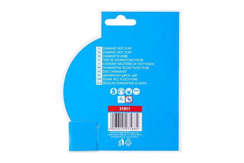 Diamond disc DIAMANT, design: FULL - all-round, high-quality diamond layer with a high content of diamond dust, precise processing - connection to the carrier disc of the disc resistant to high temperatures, use: intended for wet and dry cutting of paving and tiling, concrete, bricks, masonry, granite , marble, stone, glass, ceramics, packaging: blister with euro hole, enclosed reduction ring from 22.2 to 20 mm, dimensions: stated in the product name.