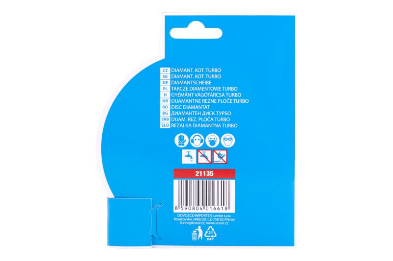 Gyémánt tárcsa DIAMANT, kialakítás: TURBO, minőségi anyagok és megmunkálás, speciális gyémánt szegmensek formája és felépítése és szilárd rögzítése a tárcsa tartótárcsájához, magas gyémántpor tartalom, felhasználás: beton, vasbeton száraz és nedves vágásához, tégla, falazat, kő, csomagolás: eurólyukkal ellátott buborékfólia, mellékelt szűkítő gyűrű 22,2-től 20 mm-ig, méretek: a termék megnevezésében.