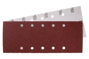 Csiszolópapír - 5 darabos készlet, szemcse: 100, típus: 10 lyuk, szemcse típusa: alumínium-oxid, kötőanyag: műgyanta, hátlap anyaga: rugalmas papír C (110-135g/m2), méretek: a termék megnevezésében feltüntetve, csomagolás: buborékfólia euro lyukkal ellátott papírkártyával.