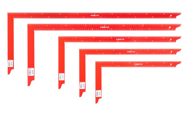 Tesařský úhelník z jednoho kusu tvrzené pružinové oceli, stupnice v mm - přesnost 0,5mm/m.