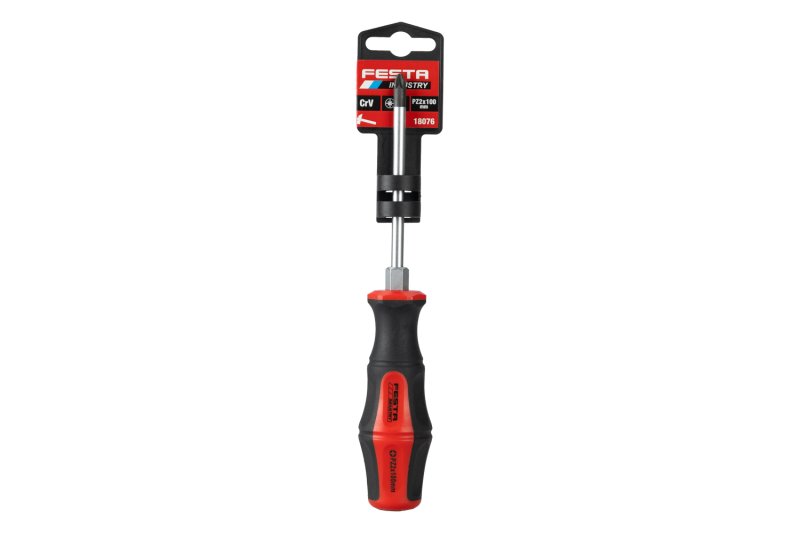 Kovový dřík šroubováku FESTA je vyroben z kvalitní chromvanadiové oceli, kalený hrot je magnetický, dřík šroubováku je pevně spojen s úderovou koncovkou, u rukojeti je šestihran pro použití klíče, kombinace polypropylenu a pryže na rukojeti a její ergonomický tvar zaručuje dobré antiskluzové vlastnosti a dobrou odolnost vůči mazadlům a chemikáliím.