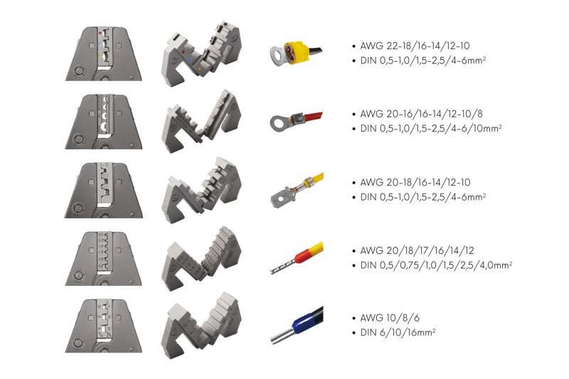 - čelisti A - izolované koncovky DIN 0.5 - 1.0 / 1.5 - 2.5 / 4.0 - 6.0 mm2 - (AWG 22 - 18 / 16 - 14 / 12 - 10)