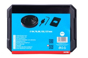 Sada vykružovacích pil 8ks do dřeva a sádrokartonu, průměr: 64,76,89,102,127 mm, inbus+hlavička.