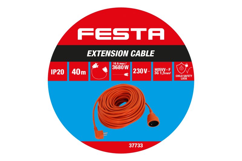 Kabel prodlužovací FESTA 3x1.5mm 40m 230V max.3680W IP20
