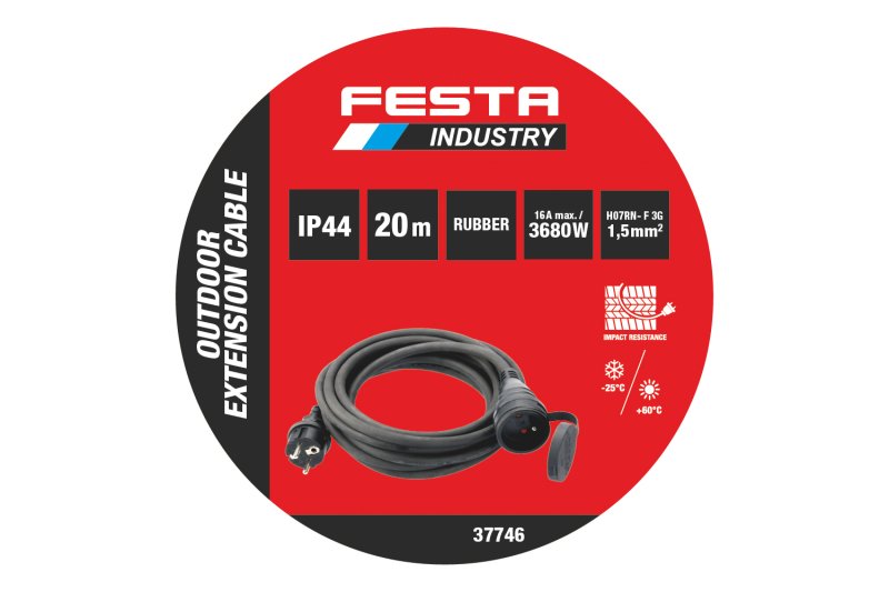 Kabel prodlužovací venkovní FESTA INDUSTRY 3x1.5mm 20 m 230V max 3680W guma-neopren IP44